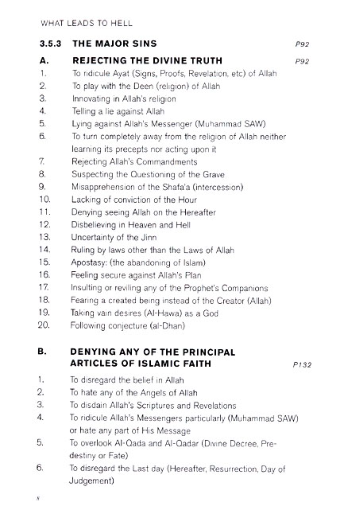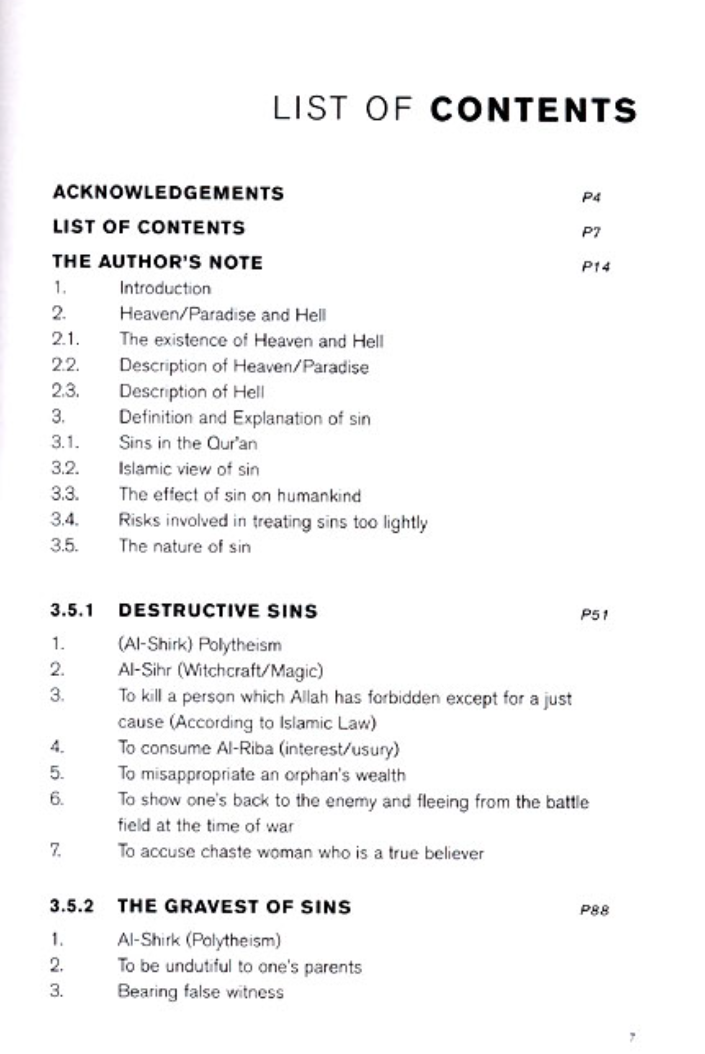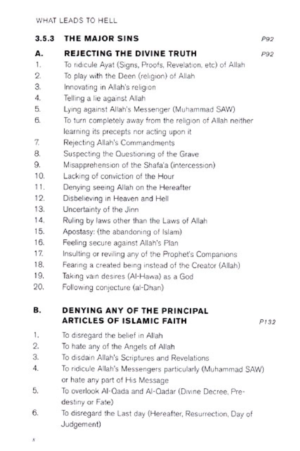 Allah has granted humankind a certain span of life in this world andwith it the ability to think and then decide their course in this life.After that, everyone will die and be buried. Then all of Allah’screation will be brought back to life on the Day of Judgment. Those who didwell on the earth will be rewarded with Heaven/Paradise, but those whowere unfortunate (i.e., the wrongdoers) will be sent to Hell. Heaven isthe abode of enjoyment, which Allah prepared for the righteous and Hellis the abode for penalty or torment, which He set up for thedisbelievers.This book covers the major and minor things in life that can leadyou to Hell.